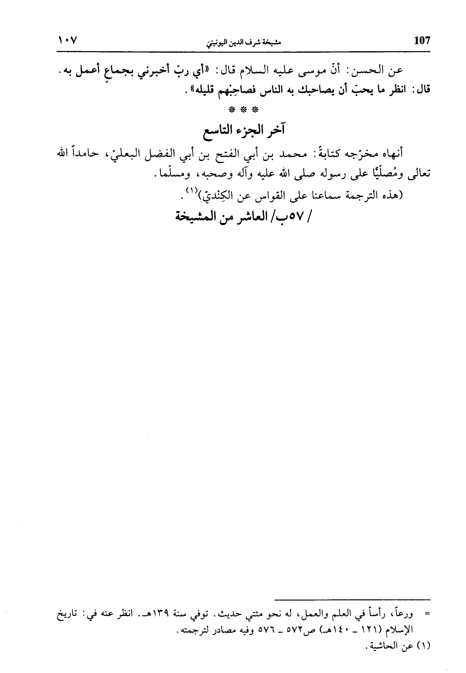 أنهاه مخرجه كتابةً: محمد بن أبي الفتح بن أبي الفضل البعلي، حامداً الله تعالى ومصلياً على رسوله صلى الله عليه وآله وصحبه، ومسلماً.