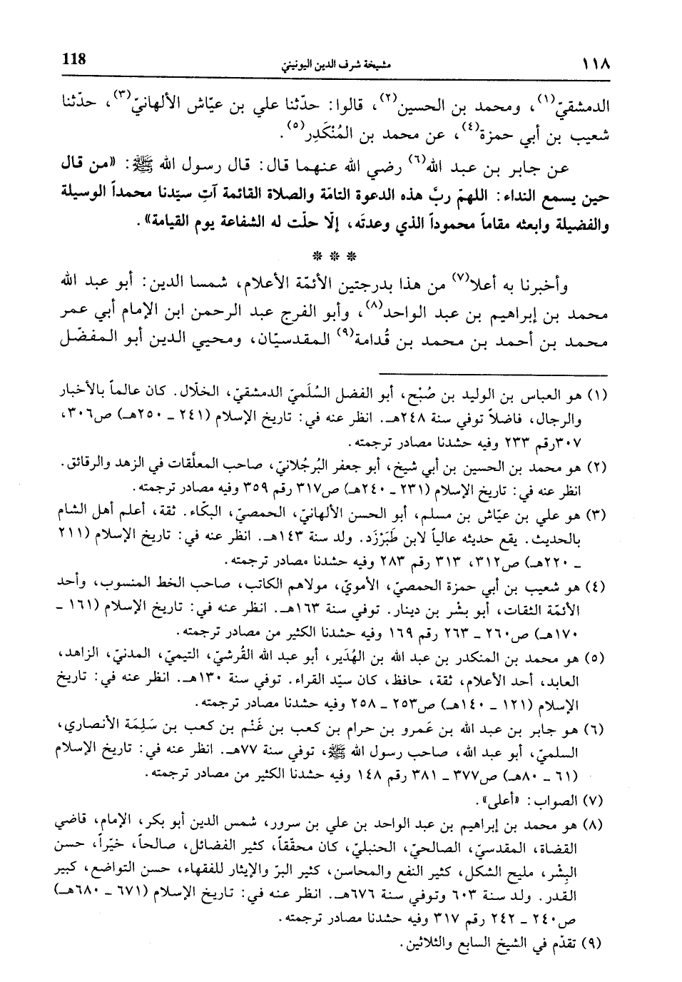 وأخبرنا به أعلا من هذا بدرجتين الأئمة الأعلام، شمسا الدين: أبو عبد الله محمد بن إبراهيم بن عبد الواحد، وأبو الفرج عبد الرحمن ابن الإمام أبي عمر محمد بن أحمد بن محمد بن قدامة المقدسيان، ومحيي الدين أبو المفضل