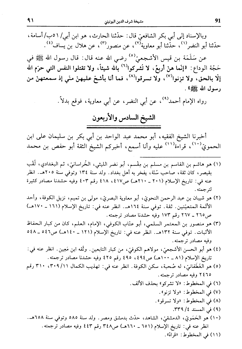 أخبرنا الشيخ الفقيه، أبو محمد عبد الواحد بن أبي بكر بن سليمان على ابن الحموي، قراءةً عليه وأنا أسمع، أخبركم الشيخ الثقة أبو حفص بن محمد
