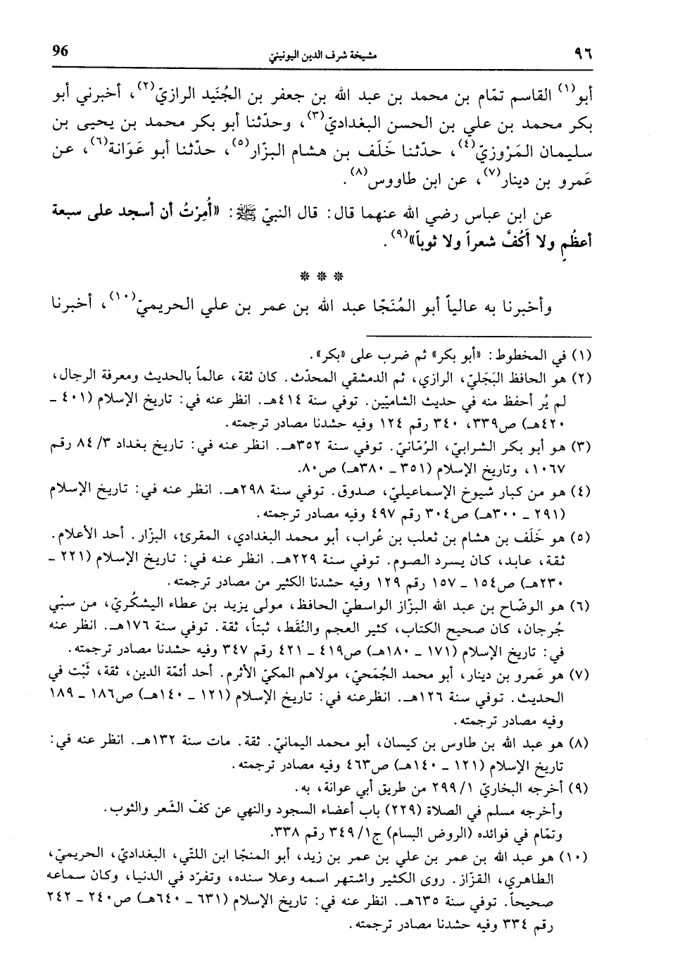 أبو القاسم تمام بن محمد بن عبد الله بن جعفر بن الجنيد الرازي، أخبرني أبو بكر محمد بن علي بن الحسن البغدادي، وحدثنا أبو بكر محمد بن يحيى بن سليمان المروزي، حدثنا خلف بن هشام البزار، حدثنا أبو عوانة، عن عمرو بن دينار، عن ابن طاووس.