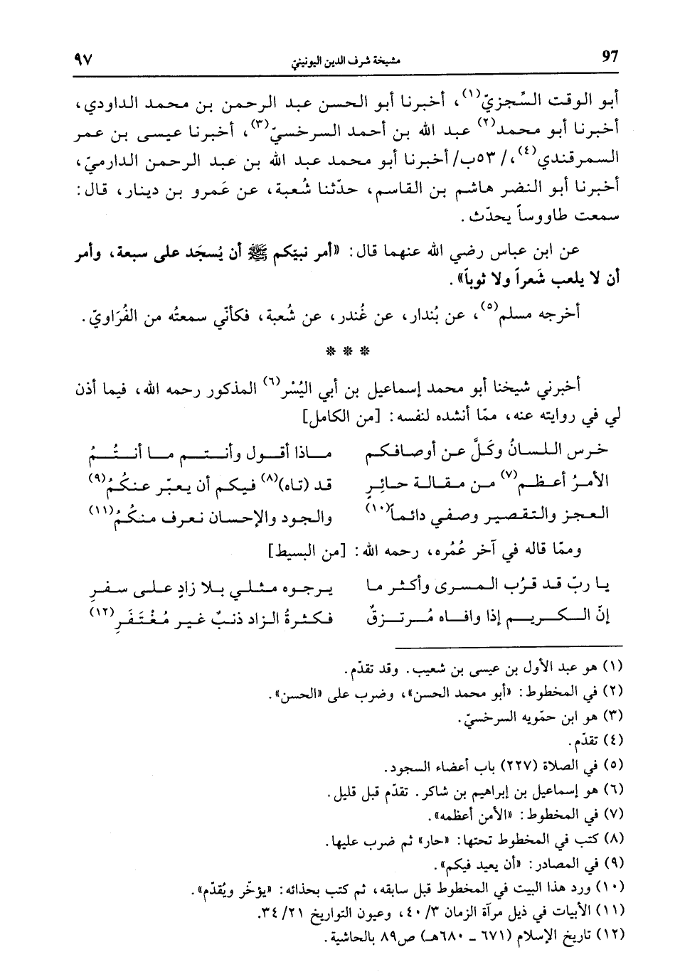 أبو الوقت السجزي، أخبرنا أبو الحسن عبد الرحمن بن محمد الداودي، أخبرنا أبو محمد عبد الله بن أحمد السرخسي، أخبرنا عيسى بن عمر السمرقندي، أخبرنا أبو محمد عبد الله بن عبد الرحمن الدارمي، أخبرنا أبو النضر هاشم بن القاسم، حدثنا شعبة، عن عمرو بن دينار، قال: سمعت طاووساً يحدث.