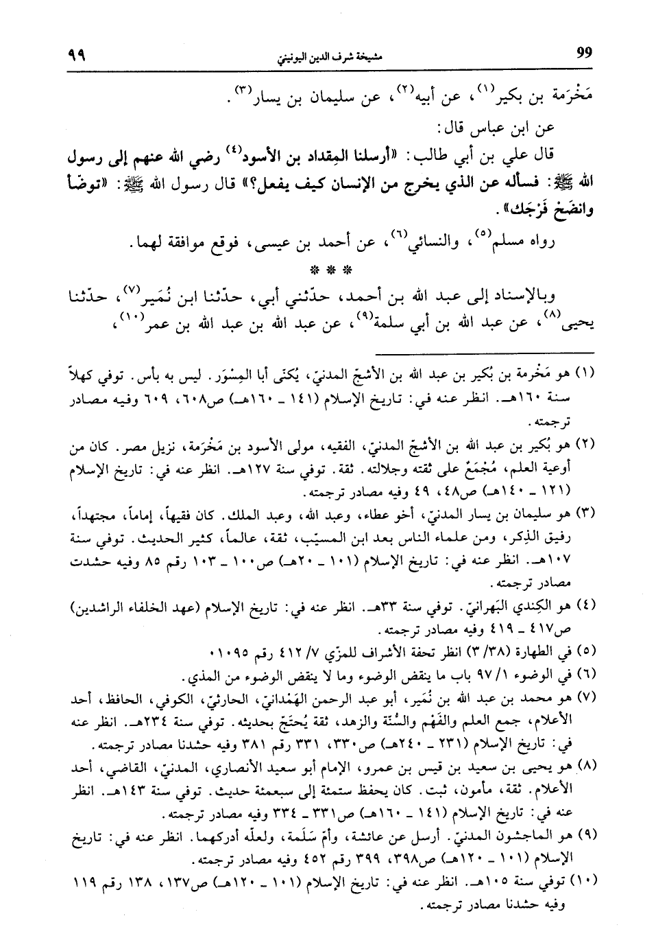 وبالإسناد إلى عبد الله بن أحمد، حدثني أبي، حدثنا ابن نمير، حدثنا يحيى، عن عبد الله بن أبي سلمة، عن عبد الله بن عبد الله بن عمر،