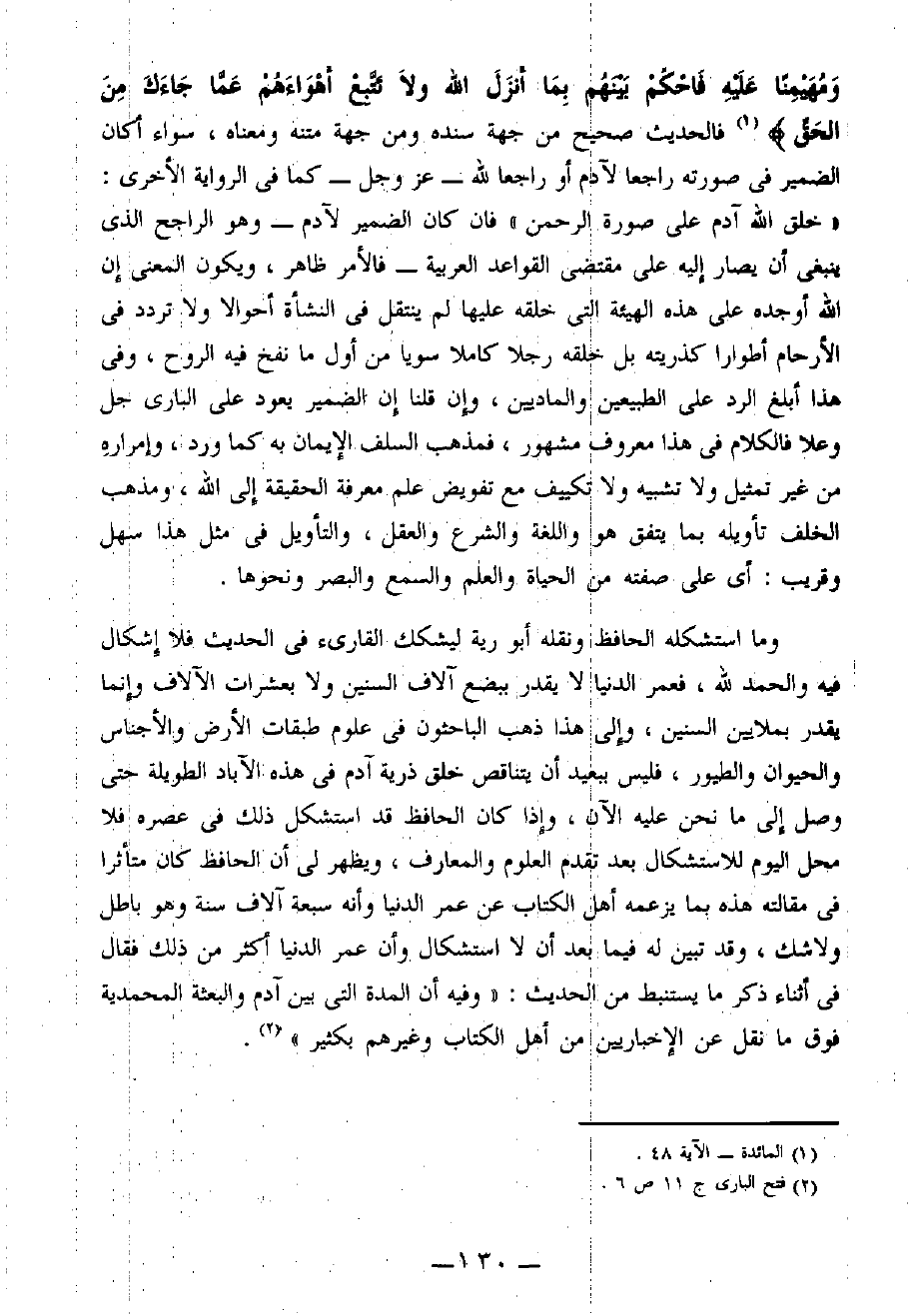 وما استشكله الحافظ ونقله أَبُو رَيَّةَ ليشكك القارئ في الحديث فلا إشكال فيه والحمد لله، فعمر الدنيا لا يقدر ببضع آلاف السنين ولا بعشرات الآلاف وإنما يقدر بملايين السنين، وإلى هذا ذهب الباحثون في علوم طبقات الأرض والأجناس والحيوان والطيور، فليس ببعيد أن يتناقص خلق ذرِيَّةَ آدم في هذه الآباد الطويلة حتى وصل إلى ما نحن عليه الآن، وإذا كان الحافظ قد استشكل ذلك في عصره فلا محل اليوم للاستشكال بعد تقدم العلوم والمعارف، ويظهر لي أن الحافظ كان متأثرًا في مقالته هذه بما يزعمه أهل الكتاب عن عمر الدنيا وأنه سبعة آلاف سَنَةٍ وهو باطل ولا شك، وقد تبين له فيما بعد أن لا استشكال وأن عُمْرُ الدنيا أكثر من ذلك فقال في أثناء ذكر ما يستنبط من الحديث: «وَفِيهِ أَنَّ الْمُدَّة الَّتِي بَيْنَ آدَم وَالْبَعْثَة الْمُحَمَّدِيَّة فَوْق مَا نُقِلَ عَنْ الإِخْبَارِيِّينَ مِنْ أَهْل الكِتَاب وَغَيْرهمْ بِكَثِيرٍ» (¬2).