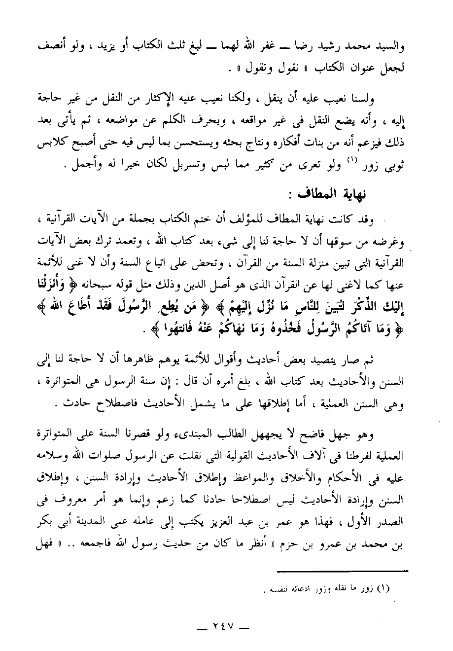 والسيد محمد رشيد رضا - غَفَرَ اللهُ لَهُمَا - لبلغ ثلث الكتاب أو يزيد، ولو أنصف لجعل عنوان الكتاب «نقول ونقول».