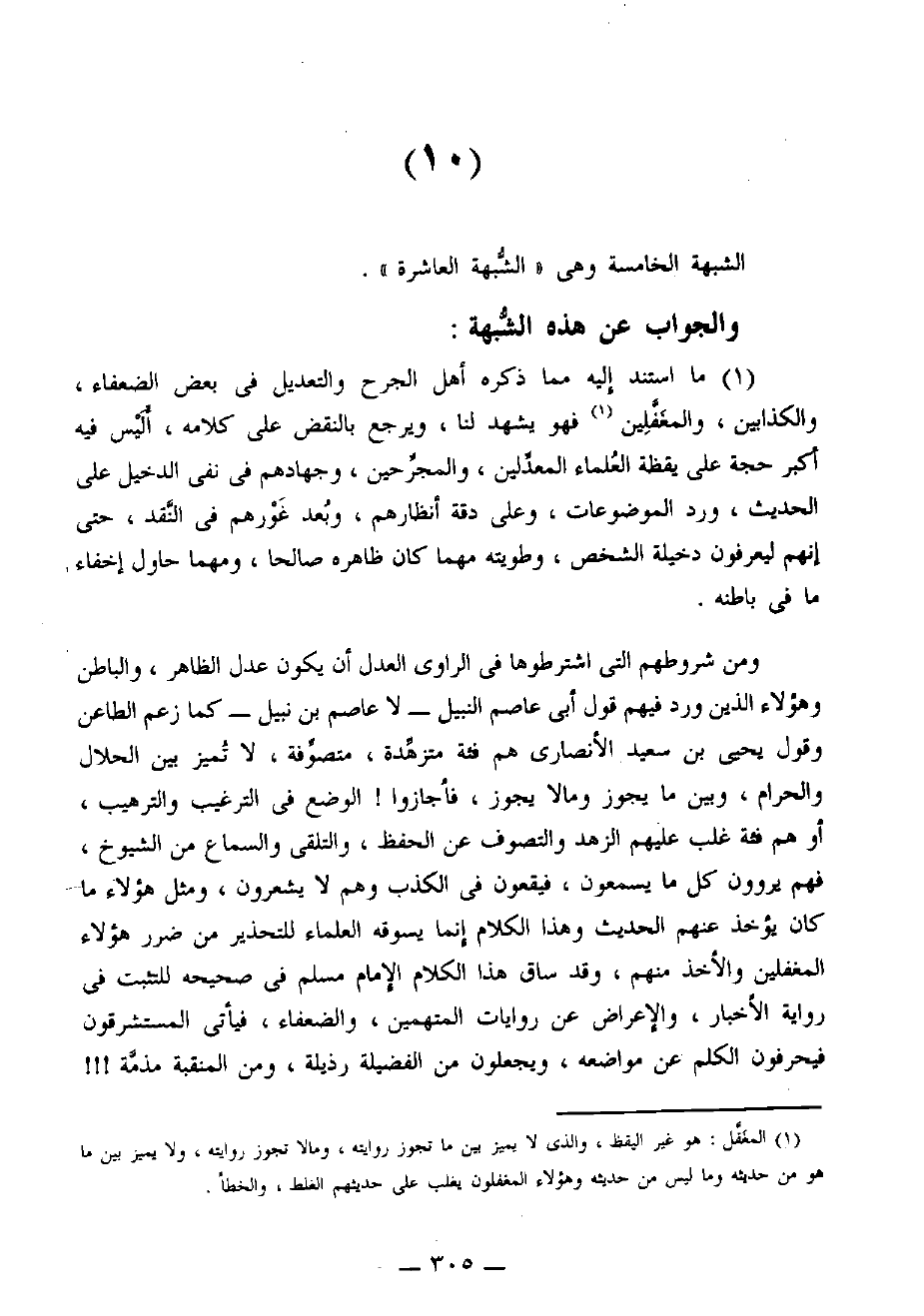 الشُّبْهَةُ الخَامِسَةُ: وهي «الشبهة العاشرة».