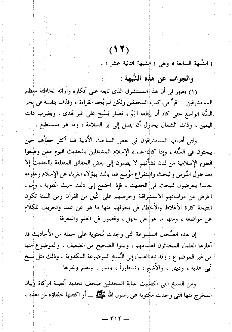الشُّبْهَةُ السَّابِعَةُ: وهي «الشبهة الثانية عشر».