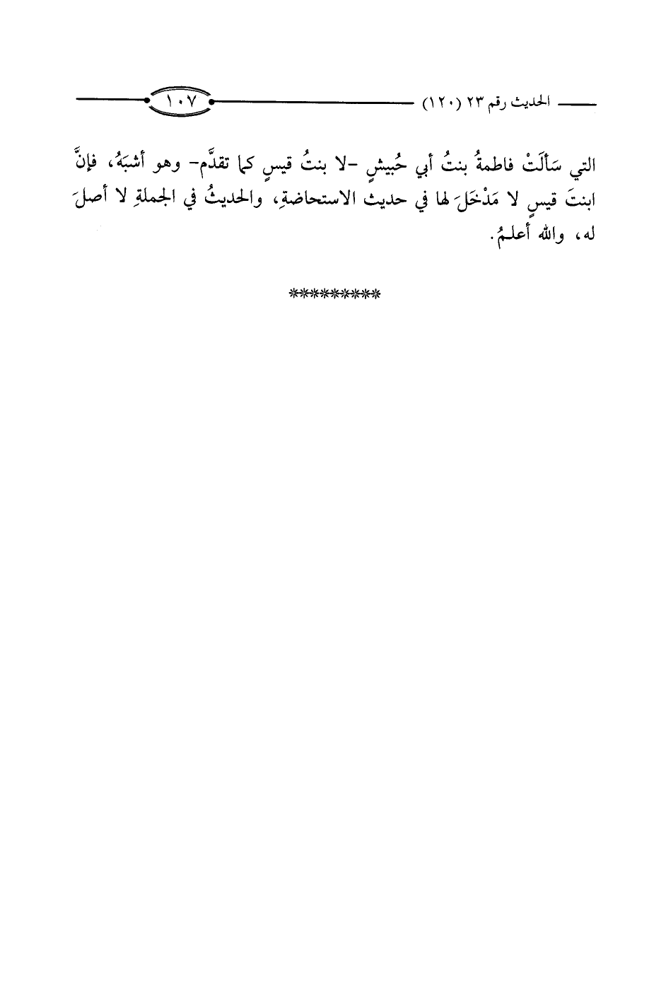 الَّتِي سَأَلَتْ فَاطِمَةُ بِنْتُ أَبِي حُبَيْشٍ - لا بِنْتُ قَيْسٍ كَمَا تَقَدَّمَ - وَهُوَ أَشْبَهُ، فَإِنَّ ابْنَةَ قَيْسٍ لا مَدْخَلَ لَهَا فِي حَدِيثِ الاسْتِحَاضَةِ، وَالْحَدِيثُ فِي الْجُمْلَةِ لا أَصْلَ لَهُ، وَاللَّهُ أَعْلَمُ.