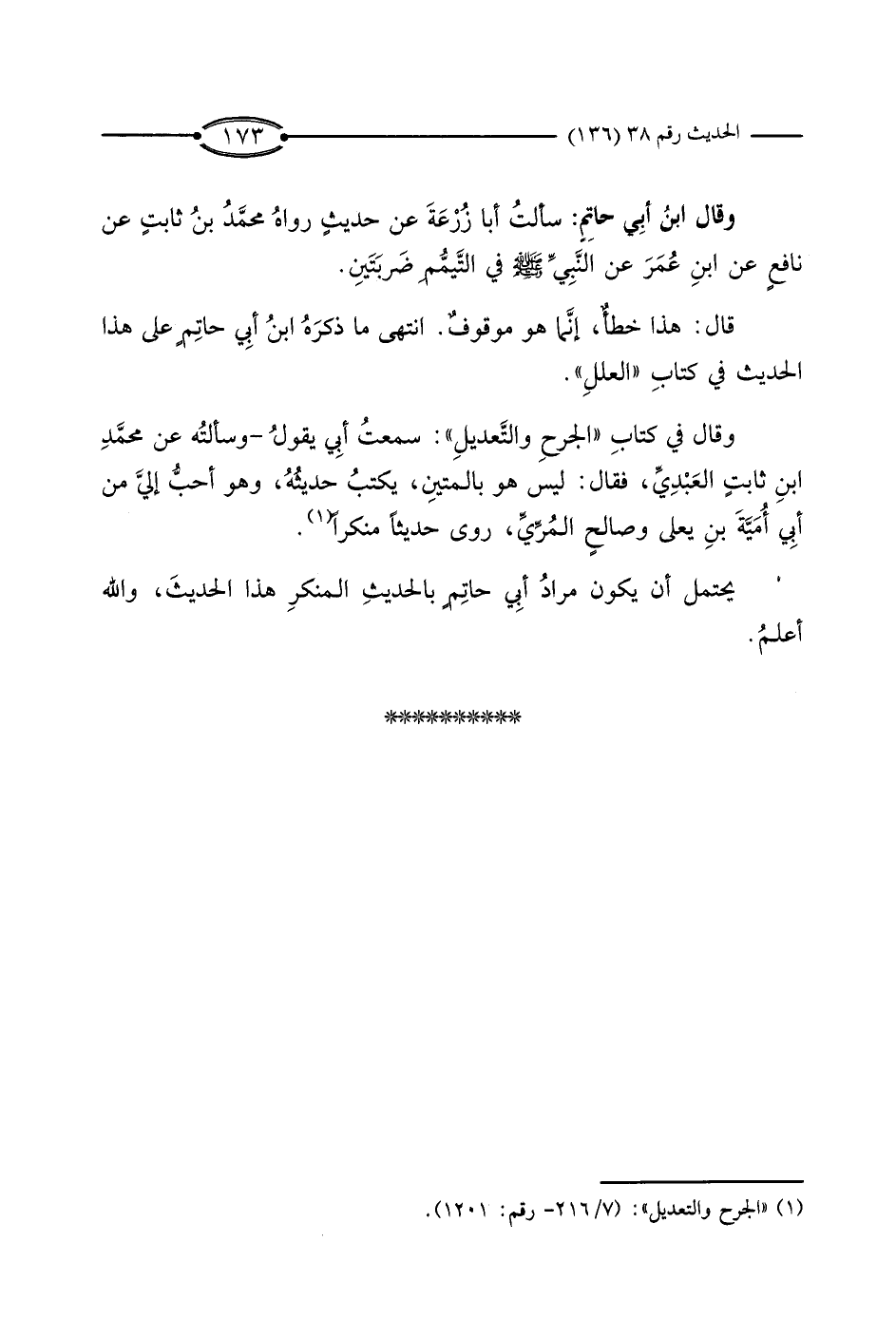 انْتَهَى مَا ذَكَرَهُ ابْنُ أَبِي حَاتِمٍ عَلَى هَذَا الْحَدِيثِ فِي كِتَابِ «الْعِلَلِ» .