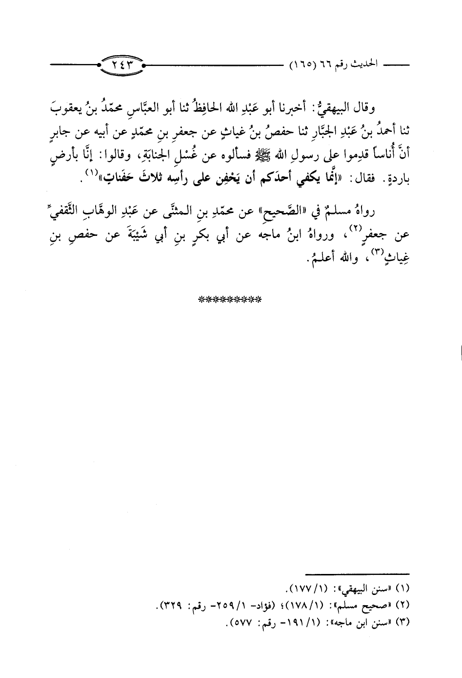 رَوَاهُ مُسْلِمٌ فِي» الصَّحِيحِ " عَنْ مُحَمَّدِ بْنِ الْمُثَنَّى، عَنْ عَبْدِ الْوَهَّابِ الثَّقَفِيِّ، عَنْ جَعْفَرٍ، وَرَوَاهُ ابْنُ مَاجَهْ، عَنْ أَبِي بَكْرِ بْنِ أَبِي شَيْبَةَ، عَنْ حَفْصِ بْنِ غِيَاثٍ، وَاللَّهُ أَعْلَمُ.