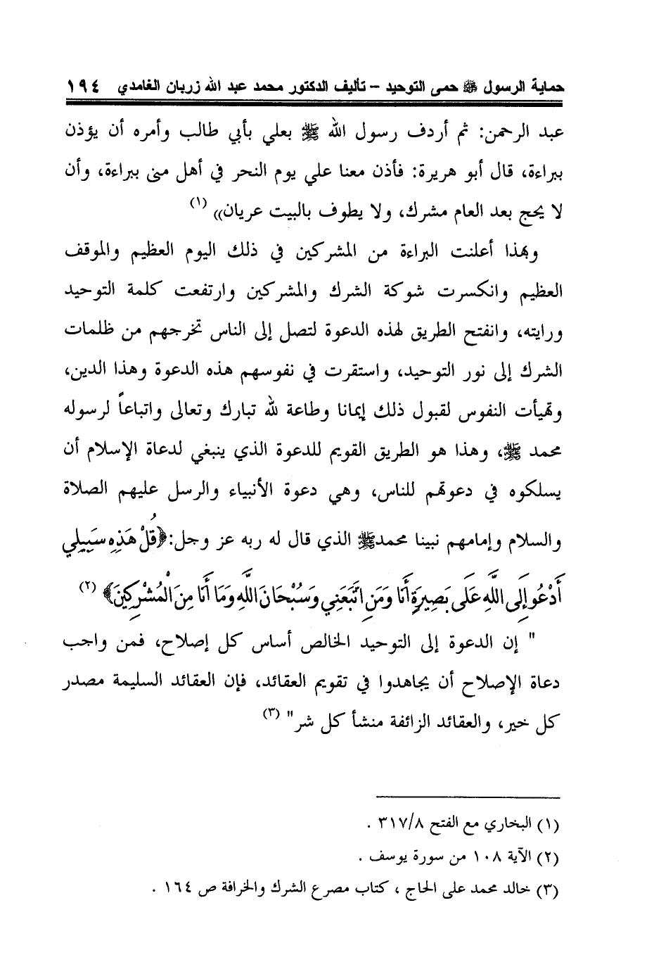 3 خالد محمد على الحاج، كتاب مصرع الشرك والخرافة ص 164.