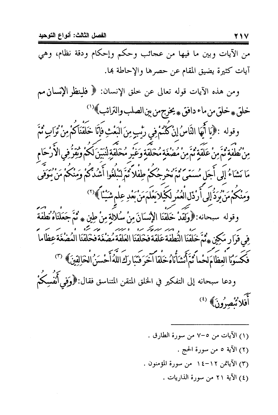 وقوله سبحانه: {وَلَقَدْ خَلَقْنَا الإِنْسَانَ مِنْ سُلالَةٍ مِنْ طِينٍ ثُمَّ جَعَلْنَاهُ نُطْفَةً فِي قَرَارٍ مَكِينٍ ثُمَّ خَلَقْنَا النُّطْفَةَ عَلَقَةً فَخَلَقْنَا الْعَلَقَةَ مُضْغَةً فَخَلَقْنَا الْمُضْغَةَ عِظَاماً فَكَسَوْنَا الْعِظَامَ لَحْماً ثُمَّ أَنْشَأْنَاهُ خَلْقاً آخَرَ فَتَبَارَكَ اللَّهُ أَحْسَنُ الْخَالِقِينَ} 3.