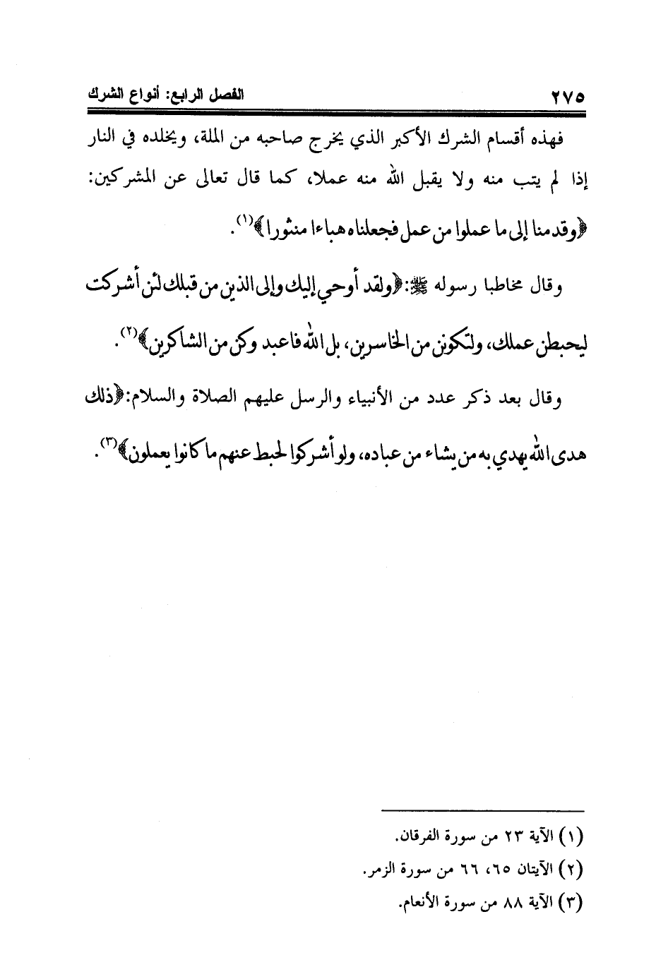 وقال بعد ذكر عدد من الأنبياء والرسل عليهم الصلاة والسلام: {ذَلِكَ هُدَى اللَّهِ يَهْدِي بِهِ مَنْ يَشَاءُ مِنْ عِبَادِهِ وَلَوْ أَشْرَكُوا لَحَبِطَ عَنْهُمْ مَا كَانُوا يَعْمَلُونَ} 3.