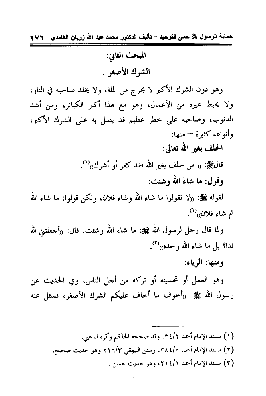 المبحث الثاني: الشرك الأصغر.