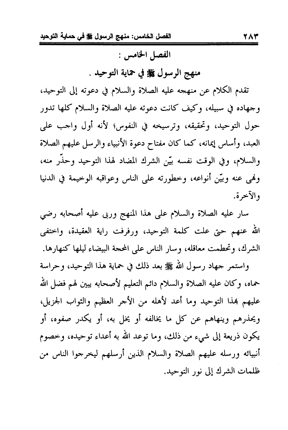 الفصل الخامس: منهج الرسول صلى الله عليه وسلم في حماية التوحيد