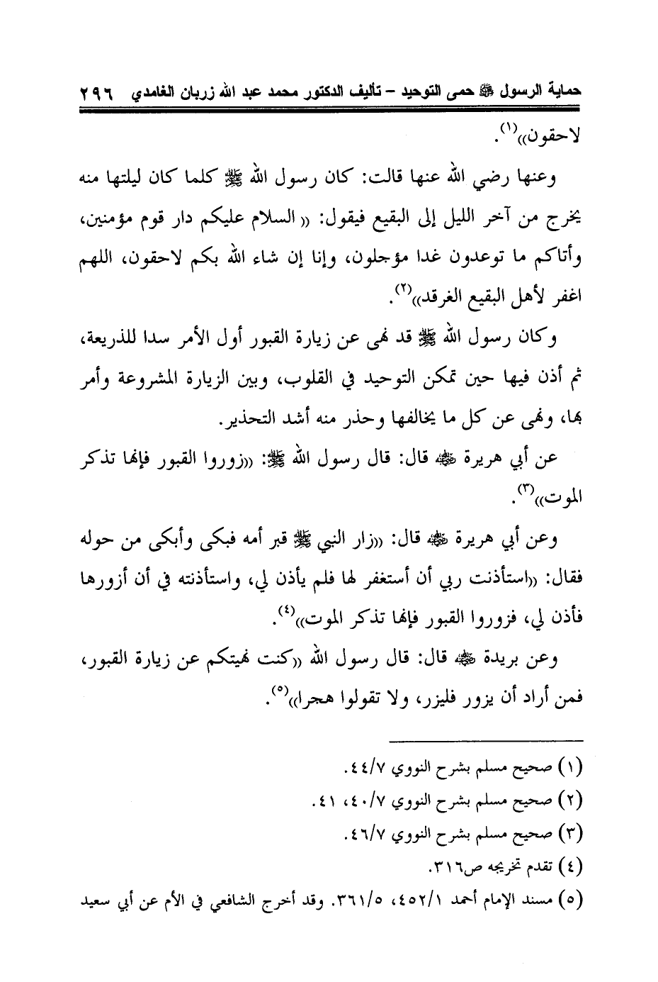 5 مسند الإمام أحمد 1/452، 5/361. وقد أخرج الشافعي في الأم عن أبي سعيد أن رسول الله صلى الله عليه وسلم قال: "ونهيتكم عن زيارة القبور فزوروها ولا تقولوا هجرا" وإسناده صحيح. انظر الأم 1/278.