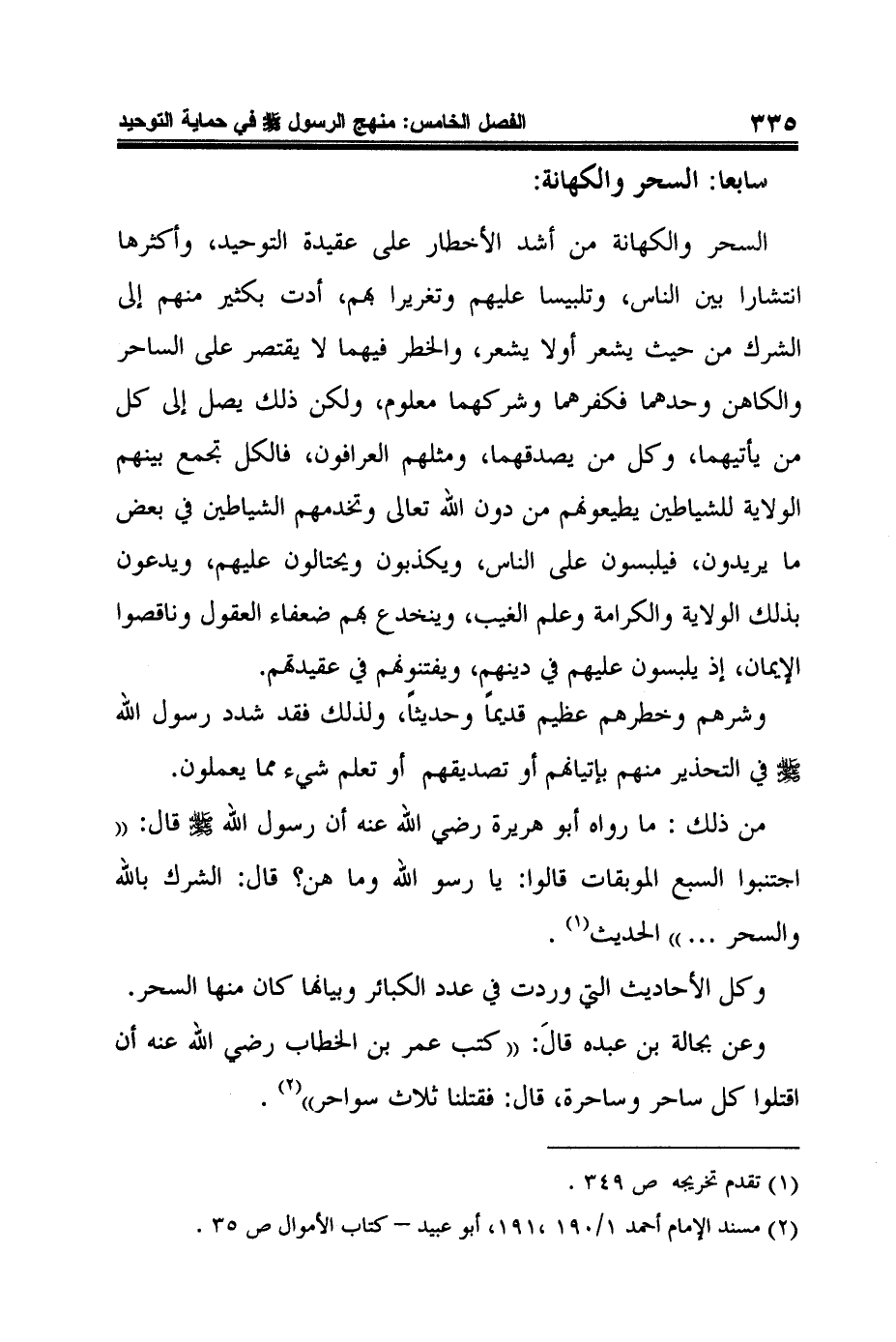وكل الأحاديث التي وردت في عدد الكبائر وبيانها كان منها السحر.