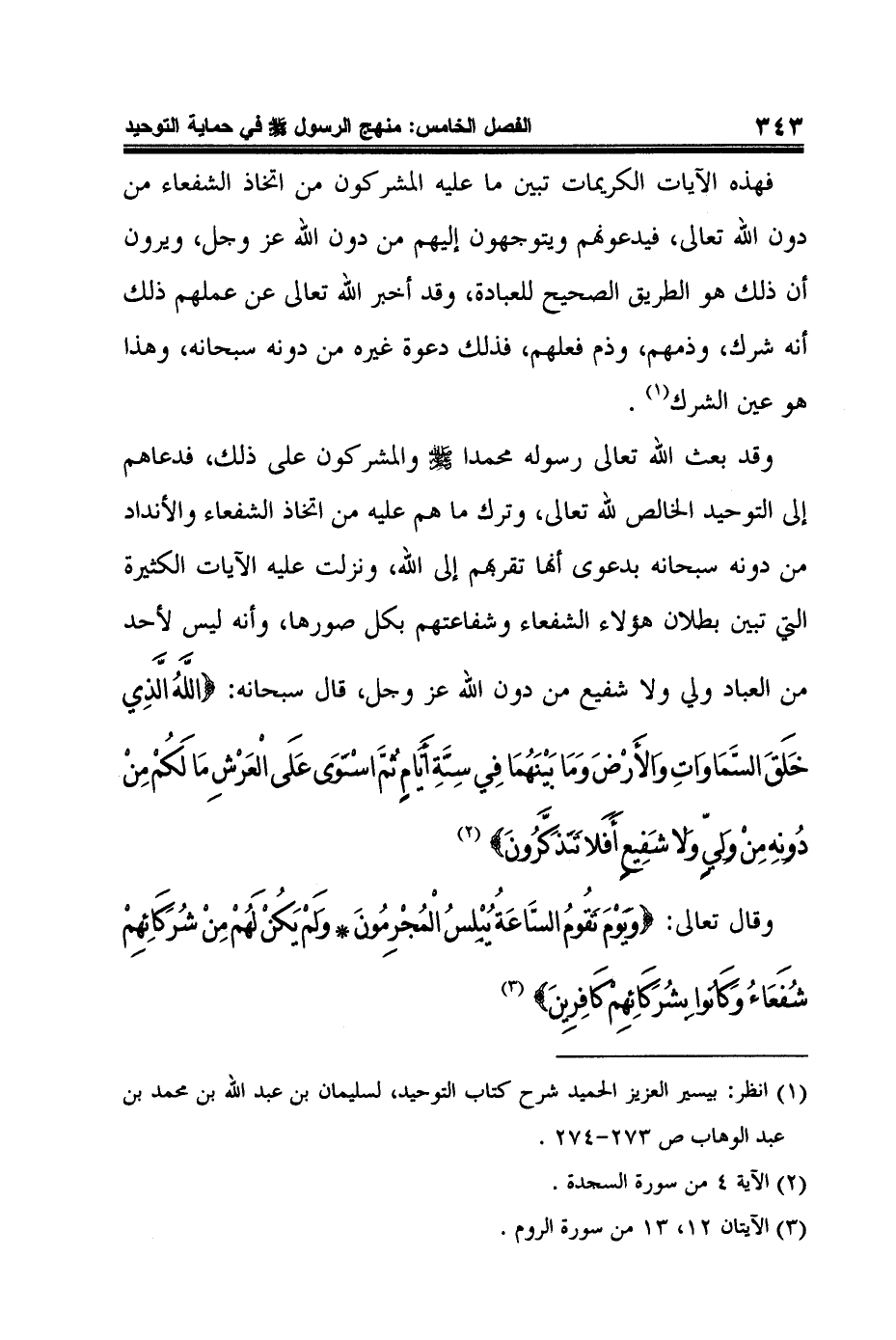 1 انظر: بيسير العزيز الحميد شرح كتاب التوحيد، لسليمان بن عبد الله بن محمد بن عبد الوهاب ص 273-274.