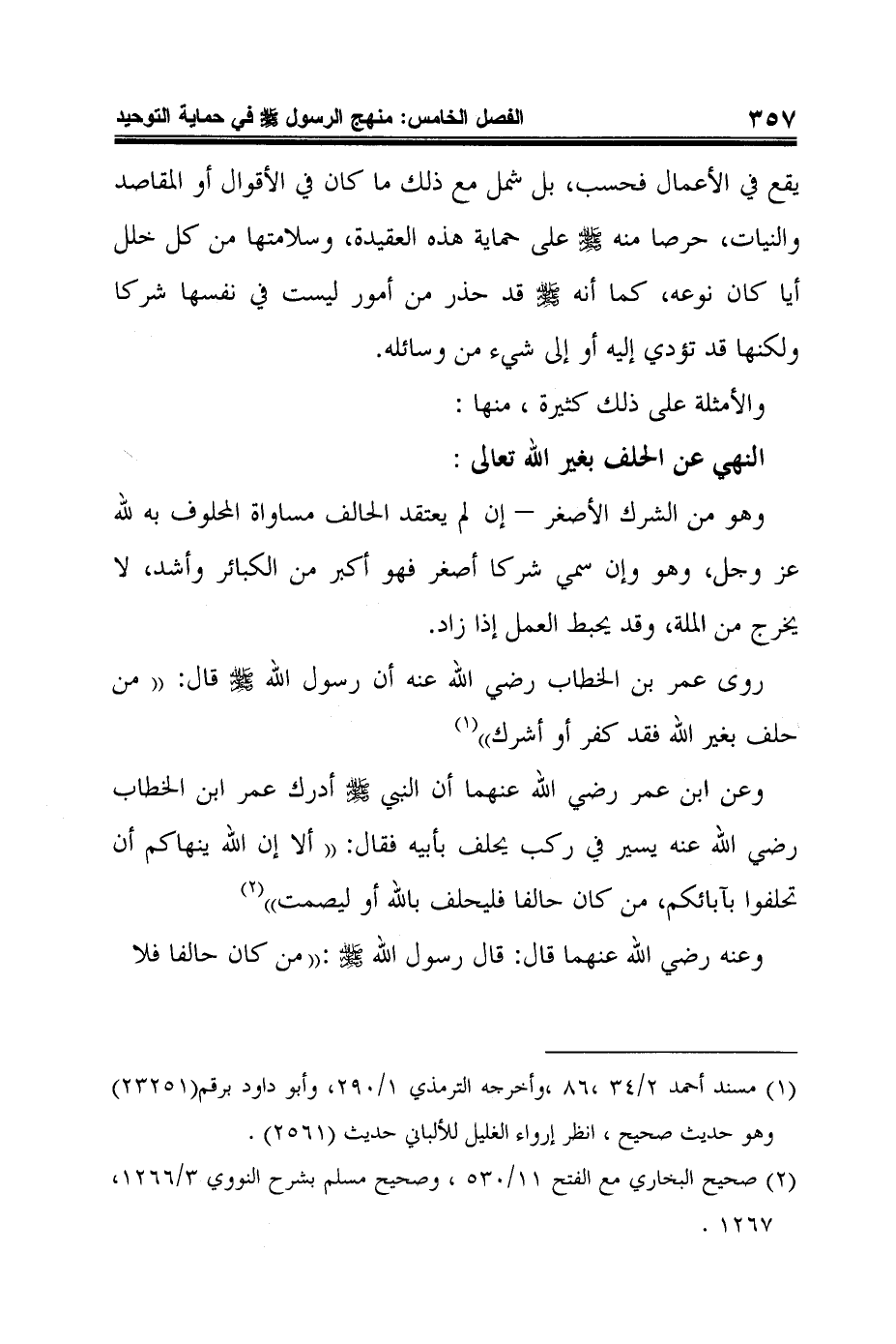 روى عمر بن الخطاب رضي الله عنه أن رسول الله صلى الله عليه وسلم قال: "من حلف بغير الله فقد كفر أو أشرك" 1.