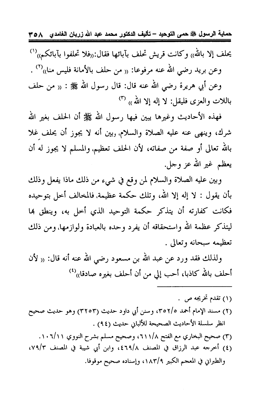 ولذلك فقد ورد عن عبد الله بن مسعود رضي الله عنه أنه قال: "لأن أحلف بالله كاذبا، أحب إلي من أن أحلف بغيره صادقا"4.