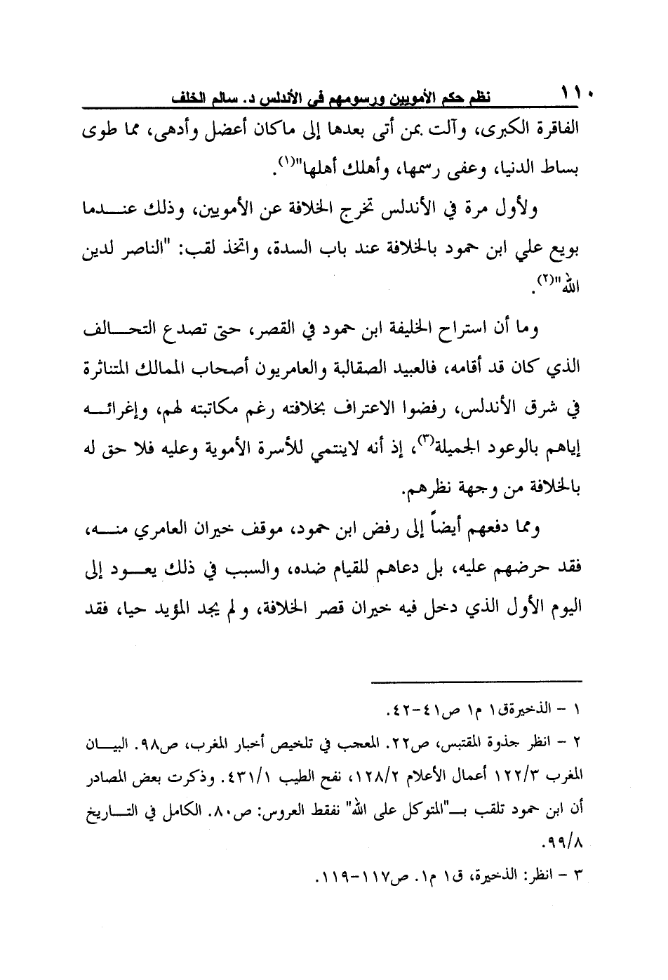 2- انظر جذوة المقتبس، ص22. المعجب في تلخيص أخبار المغرب، ص98. البيان المغرب 3/122 أعمال الأعلام 2/128، نفح الطيب 1/431. وذكرت بعض المصادر أن ابن حمود تلقب بـ"المتوكل على الله" نفقط العروس: ص80. الكامل في التاريخ 8/99.