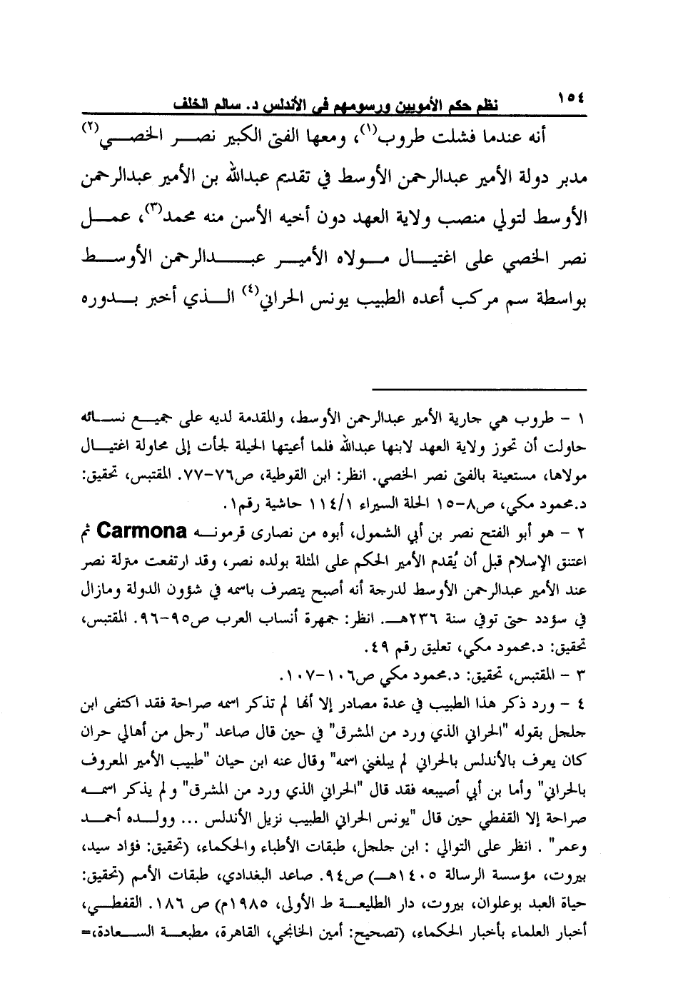 2- هو أبو الفتح نصر بن أبي الشمول، أبوه من نصارى قرمونه Carmona ثم اعتنق الإسلام قبل أن يُقدم الأمير الحكم على المثلة بولده نصر، وقد ارتفعت منزلة نصر عند الأمير عبد الرحمن الأوسط لدرجة أنه أصبح يتصرف باسمه في شؤون الدولة ومازال في سؤدد حتى توفي سنة 236هـ. انظر: جمهرة أنساب العرب ص95-96. المقتبس، تحقيق: د. محمود مكي، تعليق رقم 49.