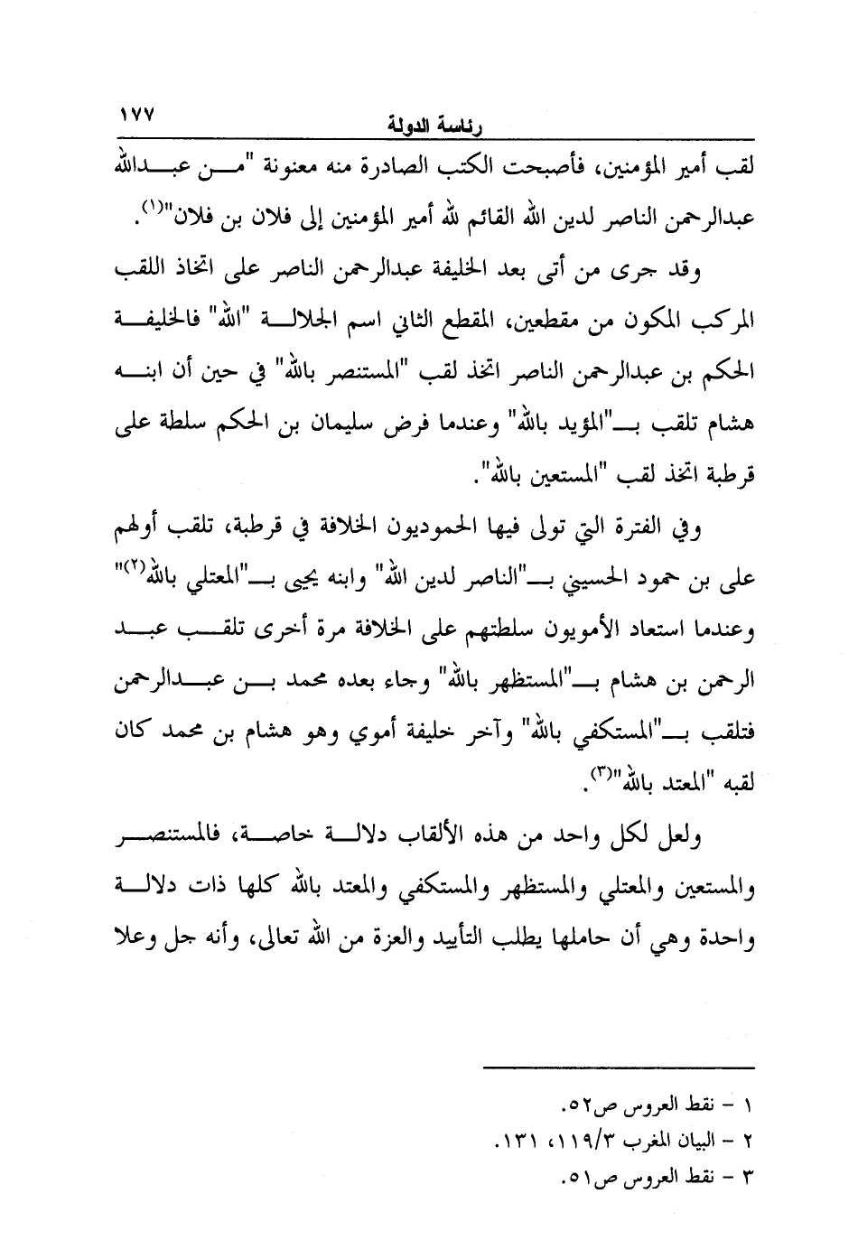 وقد جرى من أتى بعد الخليفة عبد الرحمن الناصر على اتخاذ اللقب المركب المكون من مقطعين، المقطع الثاني اسم الجلالة "الله" فالخليفة الحكم بن عبد الرحمن الناصر اتخذ لقب "المستنصر بالله" في حين أن ابنه هشام تلقب بـ"المؤيد بالله" وعندما فرض سليمان بن الحكم سلطة على قرطبة اتخذ لقب "المستعين بالله".