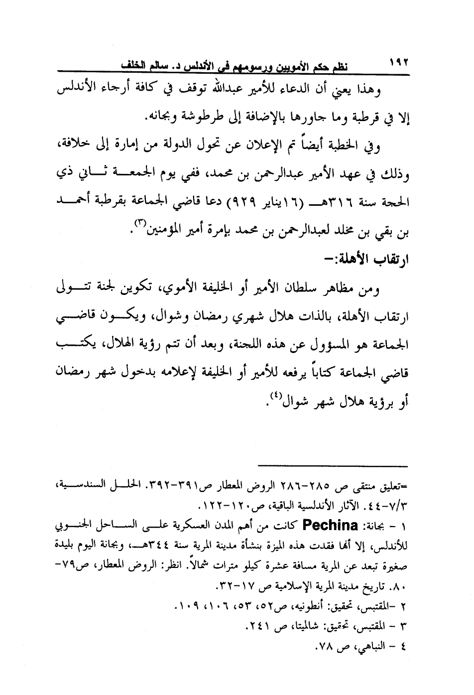 ومن مظاهر سلطان الأمير أو الخليفة الأموي، تكوين لجنة تتولى ارتقاب الأهلة، بالذات هلال شهري رمضان وشوال، ويكون قاضي الجماعة هو المسؤول عن هذه اللجنة، وبعد أن تتم رؤية الهلال، يكتب قاضي الجماعة كتاباً يرفعه للأمير أو الخليفة لإعلامه بدخول شهر رمضان أو برؤية هلال شهر شوال 2.
