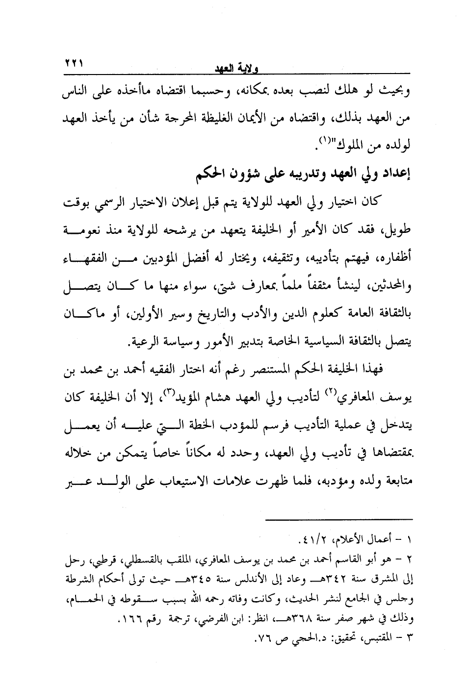 فهذا الخليفة الحكم المستنصر رغم أنه اختار الفقيه أحمد بن محمد بن يوسف المعافري2 لتأديب ولي العهد هشام المؤيد3، إلا أن الخليفة كان يتدخل في عملية التأديب فرسم للمؤدب الخطة التي عليه أن يعمل بمقتضاها في تأديب ولي العهد، وحدد له مكاناً خاصاً يتمكن من خلاله متابعة ولده ومؤدبه، فلما ظهرت علامات الاستيعاب على الولد عبر