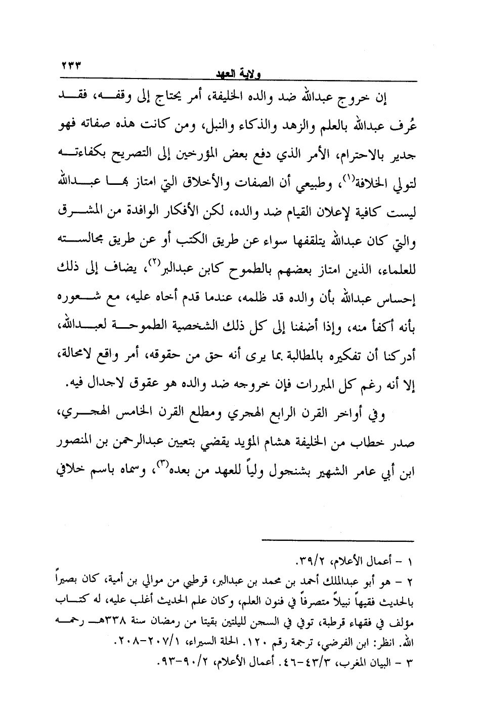 2- هو أبو عبد الملك أحمد بن محمد بن عبد البر، قرطبي من موالي بن أمية، كان بصيراً بالحديث فقيهاً نبيلاً متصرفاً في فنون العلم، وكان علم الحديث أغلب عليه، له كتاب مؤلف في فقهاء قرطبة، توفي في السجن لليلتين بقيتا من رمضان سنة 338هـ رحمه الله. انظر: ابن الفرضي، ترجمة رقم 120. الحلة السيراء، 1/207-208.