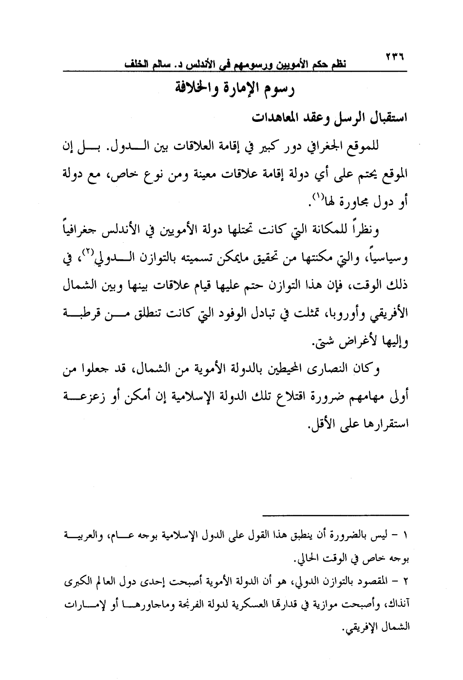 2- المقصود بالتوازن الدولي، هو أن الدولة الأموية أصبحت إحدى دول العالم الكبرى آنذاك، وأصبحت موازية في قدارتها العسكرية لدولة الفرنجة وما جاورها أو لإمارات الشمال الإفريقي.