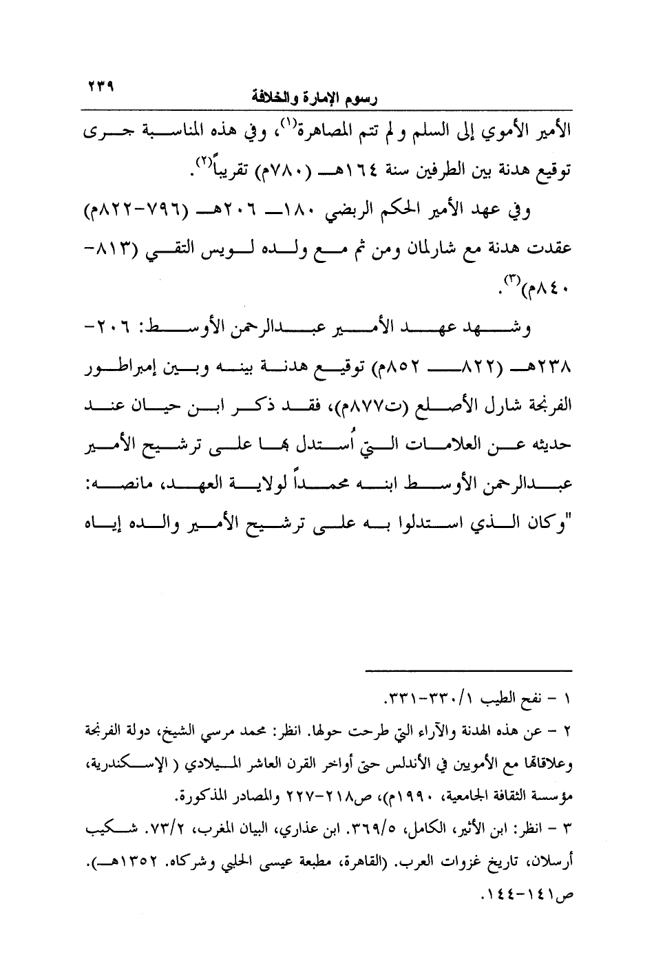 2- عن هذه الهدنة والآراء التي طرحت حولها. انظر: محمد مرسي الشيخ، دولة الفرنجة وعلاقاتها مع الأمويين في الأندلس حتى أواخر القرن العاشر الميلادي (الإسكندرية، مؤسسة الثقافة الجامعية، 1990م) ، ص218-227 والمصادر المذكورة.