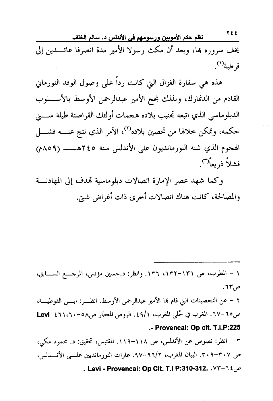 3- انظر: نصوص عن الأندلس، ص 118-119. المقتبس، تحقيق: د. محمود مكي، ص 307-309. البيان المغرب، 2/96-97. غارات النورمانديين على الأندلس، ص64-73. Levi- Provencal: Op Cit. T.I P:310-312..