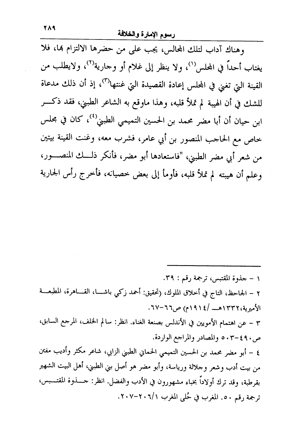 3- عن اهتمام الأمويين في الأندلس بصنعة الغناء. انظر: سالم الخلف، المرجع السابق، ص490-503 والمصادر والمراجع الواردة.