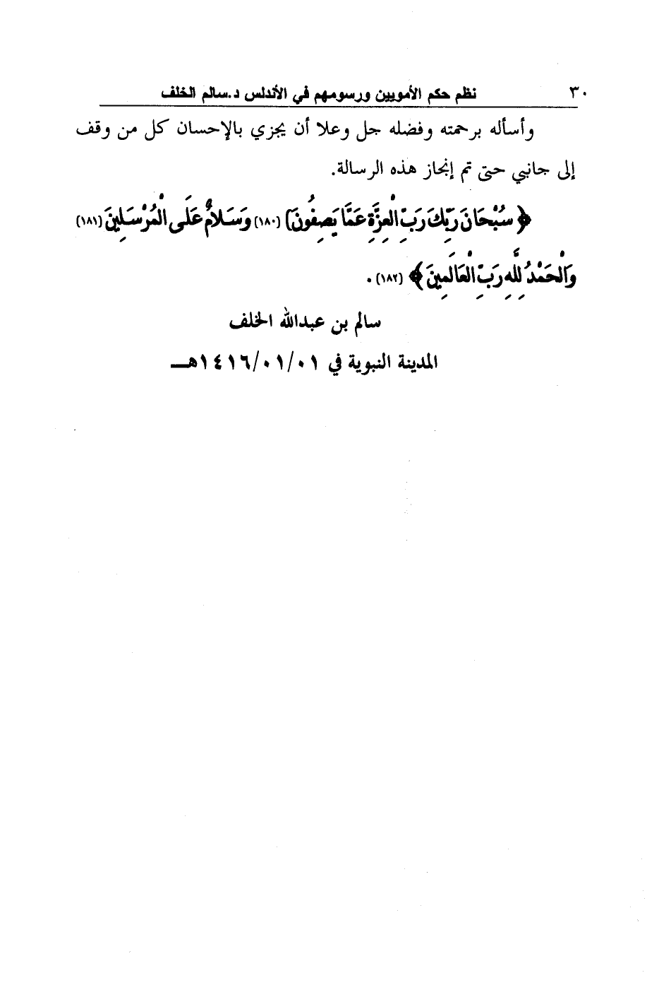 {سُبْحَانَ رَبِّكَ رَبِّ الْعِزَّةِ عَمَّا يَصِفُونَ وَسَلامٌ عَلَى الْمُرْسَلِينَ وَالْحَمْدُ لِلَّهِ رَبِّ الْعَالَمِينَ} الصافات (182) .