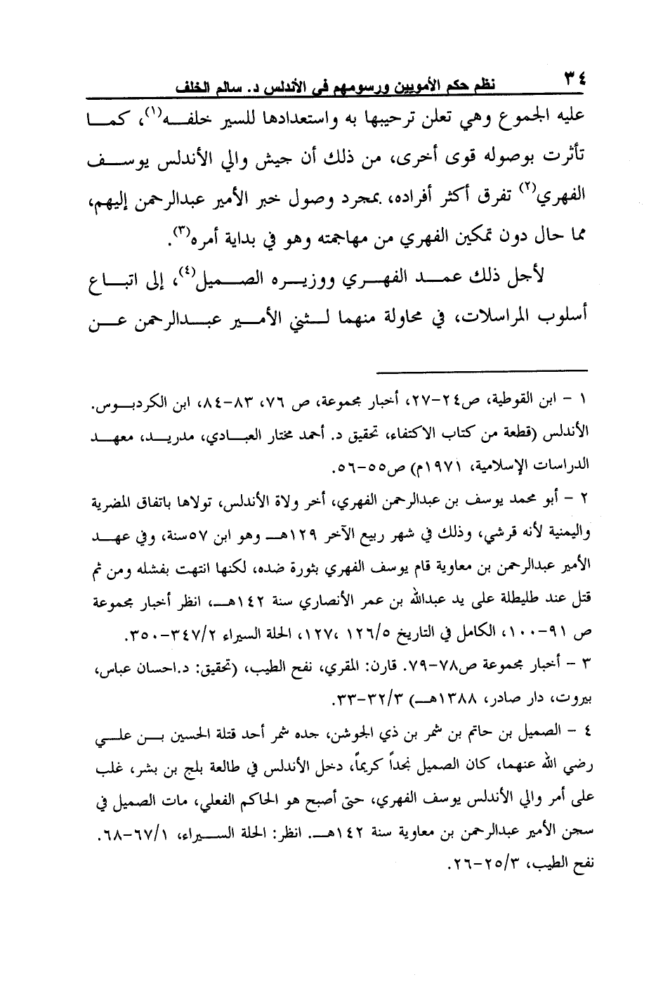 2- أبو محمد يوسف بن عبد الرحمن الفهري، أخر ولاة الأندلس، تولاها باتفاق المضرية واليمنية لأنه قرشي، وذلك في شهر ربيع الآخر 129هـ وهو ابن 57سنة، وفي عهد الأمير عبد الرحمن بن معاوية قام يوسف الفهري بثورة ضده، لكنها انتهت بفشله ومن ثم قتل عند طليطلة على يد عبد الله بن عمر الأنصاري سنة 142هـ، انظر أخبار مجموعة ص 91-100، الكامل في التاريخ 5/126،127، الحلة السيراء 2/347-350.