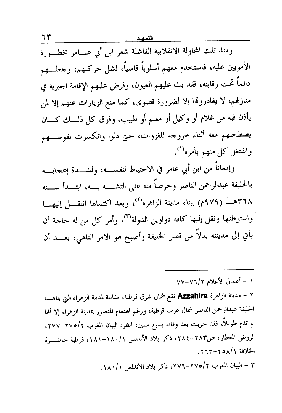 وإمعاناً من ابن أبي عامر في الاحتياط لنفسه، ولشدة إعجابه بالخليفة عبد الرحمن الناصر وحرصاً منه على التشبه به، ابتدأ سنة 368هـ (979م) ببناء مدينة الزاهرة2، وبعد اكتمالها انتقل إليها واستوطنها ونقل إليها كافة دواوين الدولة3، وأمر كل من له حاجة أن يأتي إلى مدينته بدلاً من قصر الخليفة وأصبح هو الآمر الناهي، بعد أن