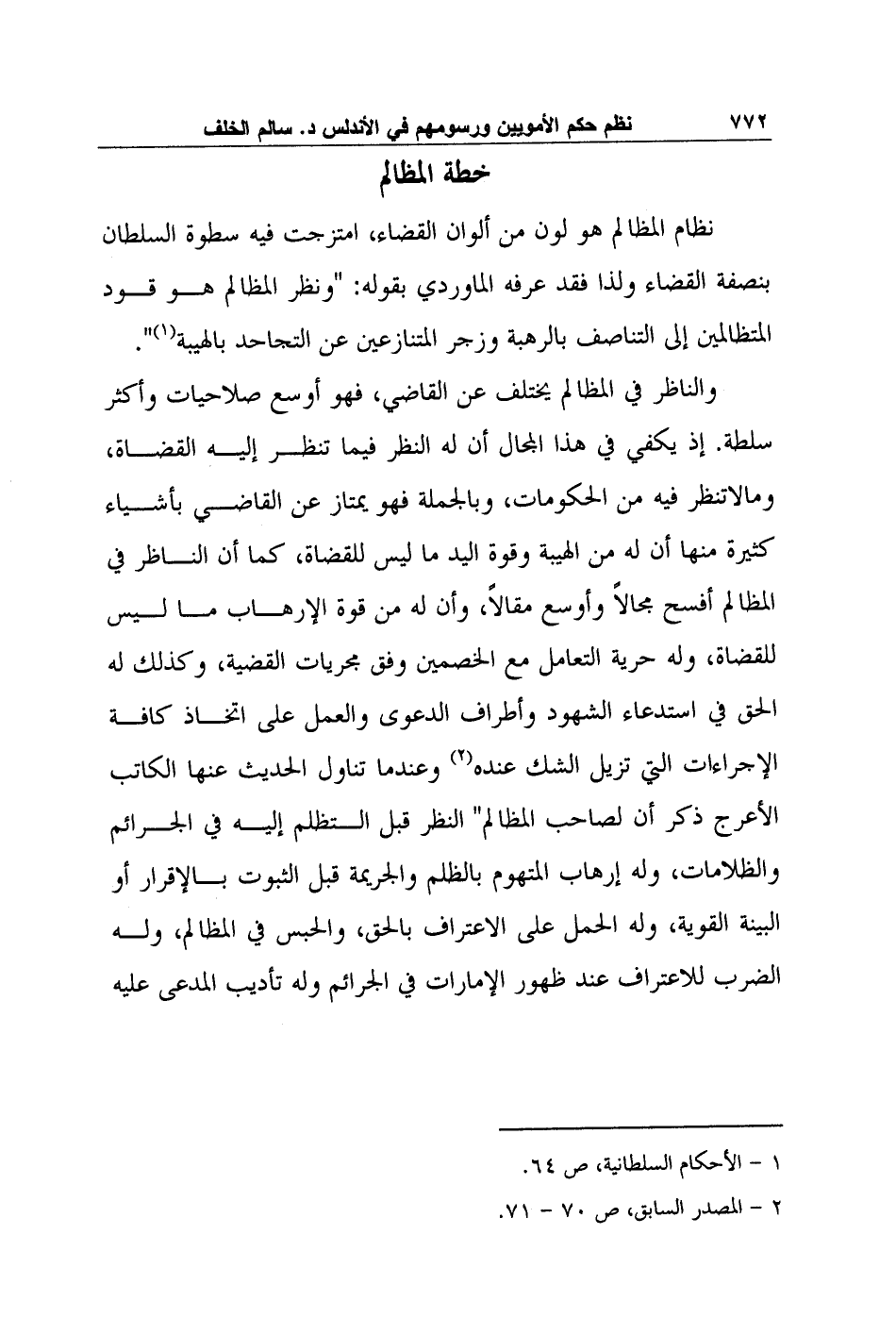 نظام المظالم هو لون من ألوان القضاء، امتزجت فيه سطوة السلطان بنصفة القضاء ولذا فقد عرفه الماوردي بقوله: "ونظر المظالم هو قود المتظالمين إلى التناصف بالرهبة وزجر المتنازعين عن التجاحد بالهيبة1".