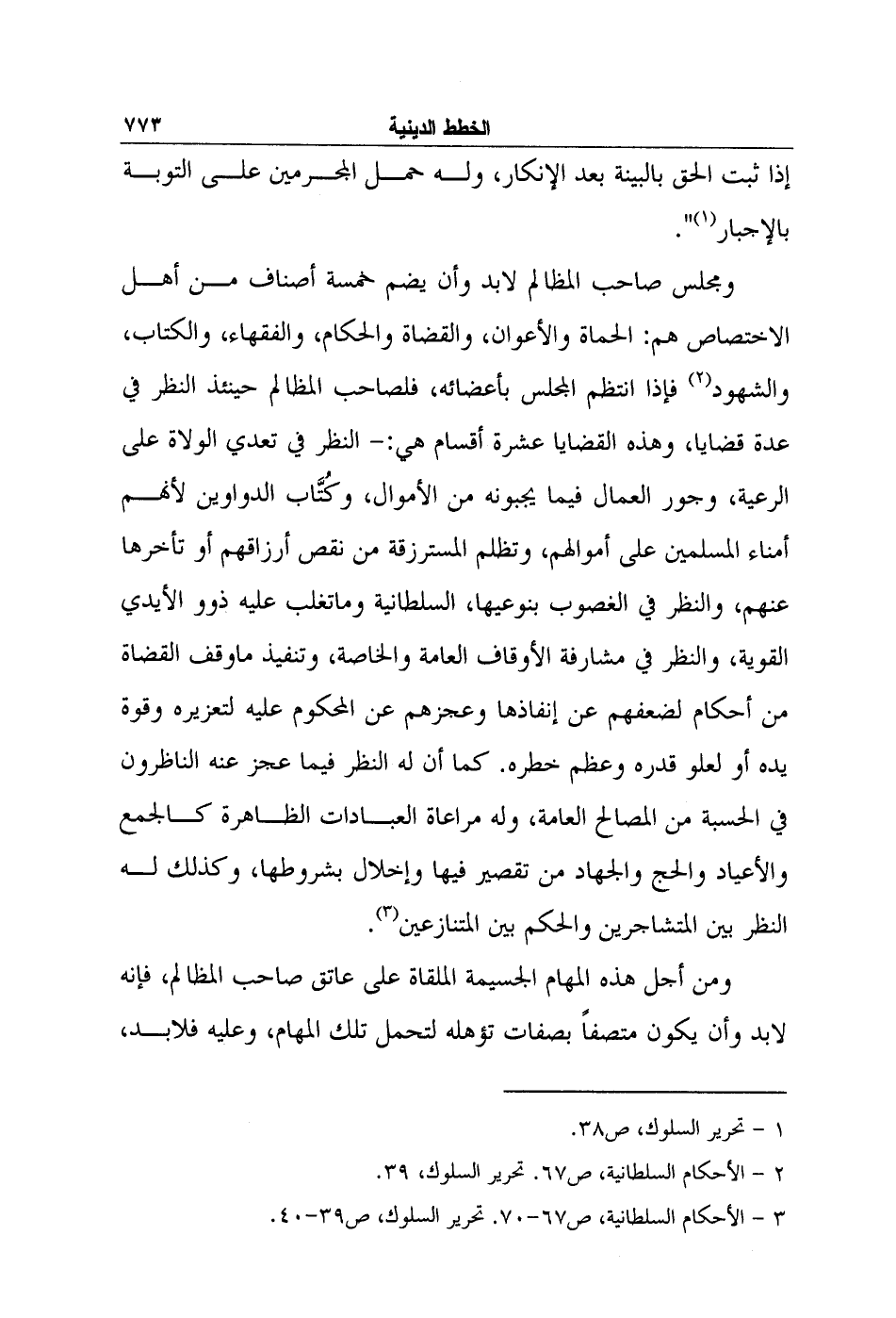2- الأحكام السلطانية، ص67. تحرير السلوك، 39.