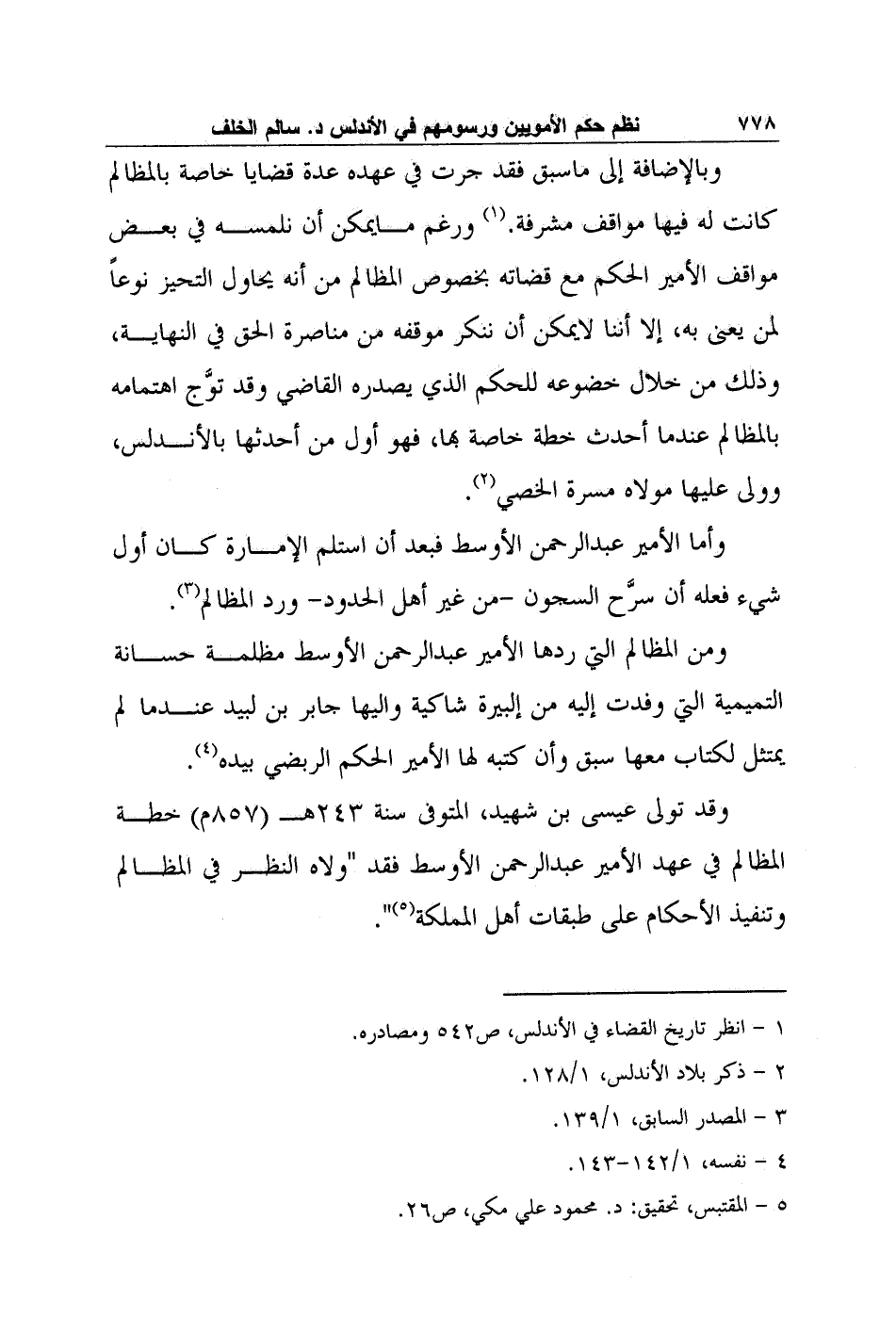1- انظر تاريخ القضاء في الأندلس، ص542 ومصادره.