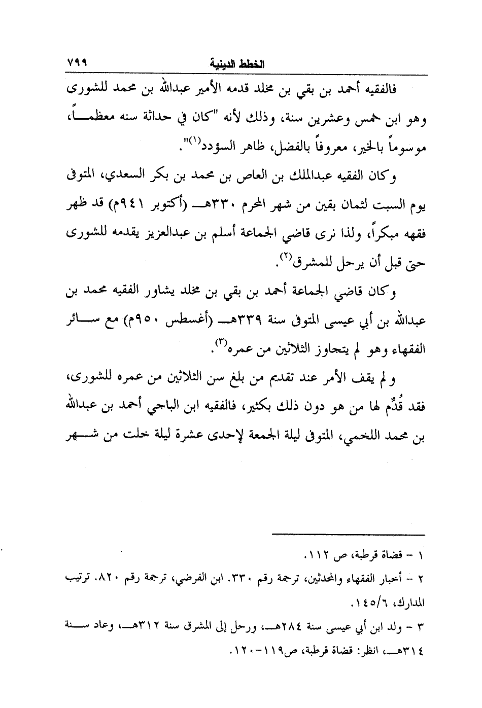 3- ولد ابن أبي عيسى سنة 284هـ، ورحل إلى المشرق سنة 312هـ، وعاد سنة 314هـ، انظر: قضاة قرطبة، ص119-120.