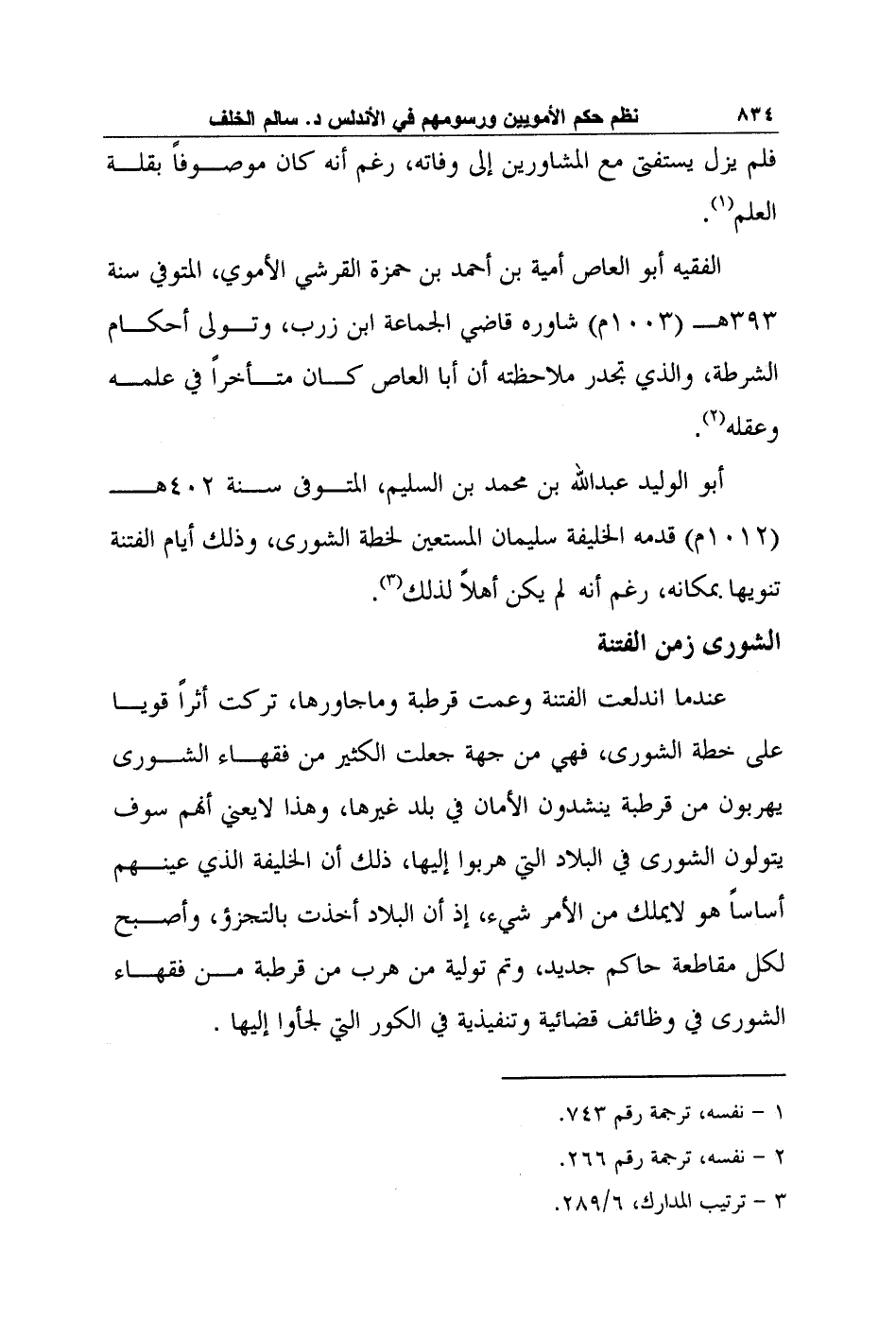 أبو الوليد عبد الله بن محمد بن السليم، المتوفى سنة 402هـ (1012م) قدمه الخليفة سليمان المستعين لخطة الشورى، وذلك أيام الفتنة تنويها بمكانه، رغم أنه لم يكن أهلاً لذلك3.