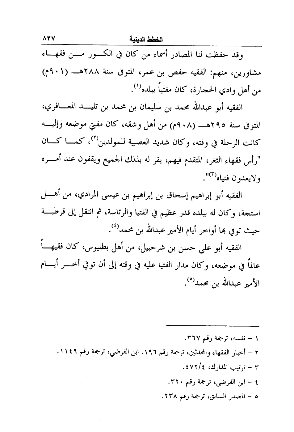 وقد حفظت لنا المصادر أسماء من كان في الكور من فقهاء مشاورين، منهم: الفقيه حفص بن عمر، المتوفى سنة 288هـ (901م) من أهل وادي الحجارة، كان مفتياً ببلده1.