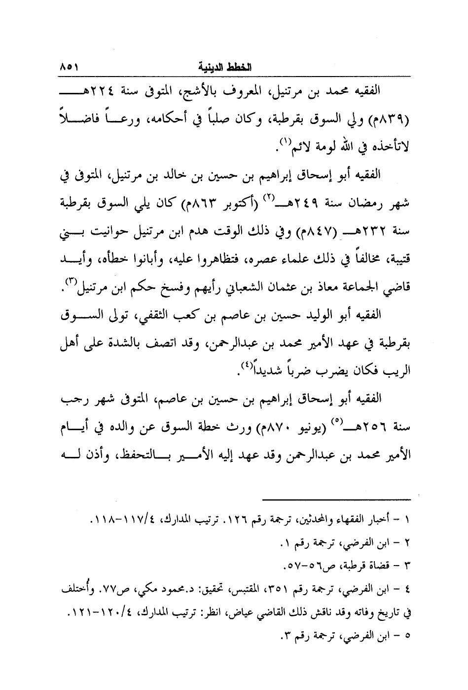 4- ابن الفرضي، ترجمة رقم 351، المقتبس، تحقيق: د. محمود مكي، ص77. وأُختلف في تاريخ وفاته وقد ناقش ذلك القاضي عياض، انظر: ترتيب المدارك، 4/120-121.