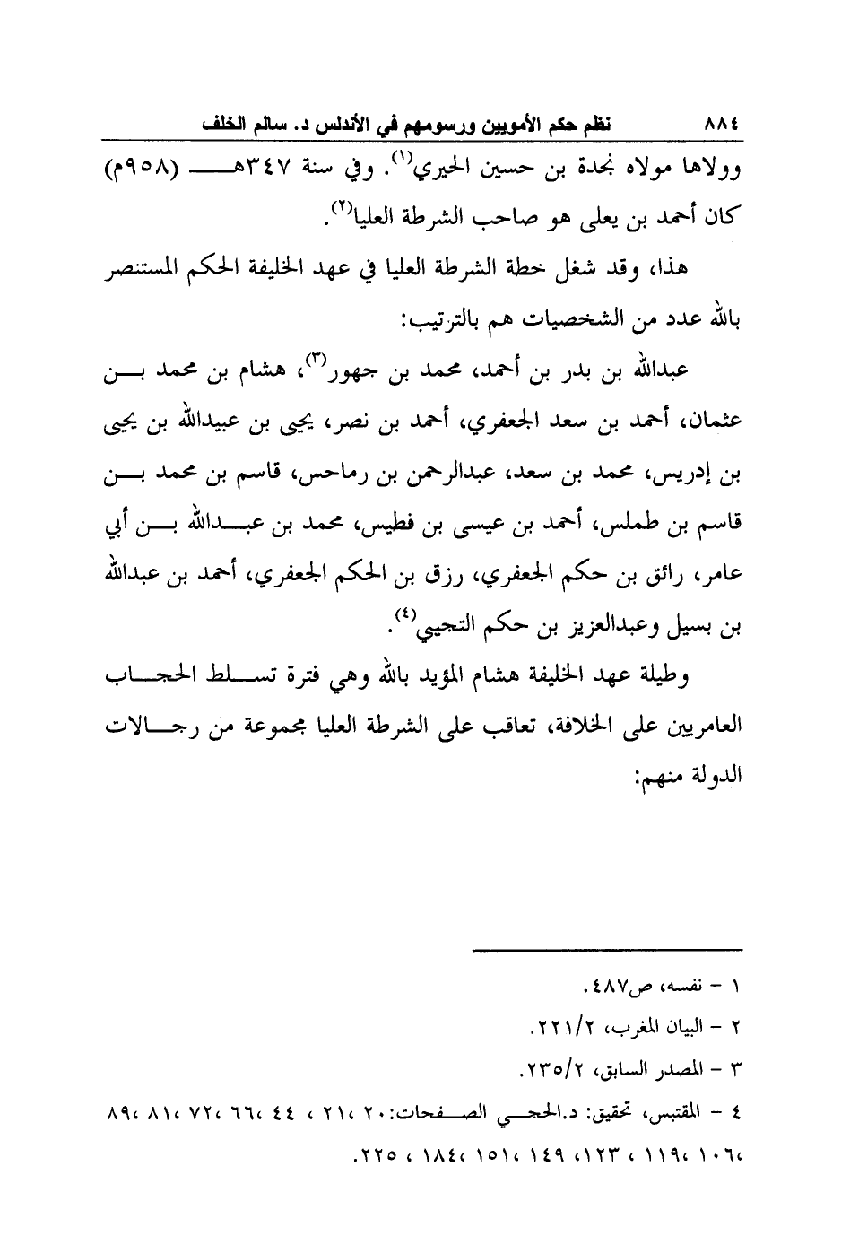 هذا، وقد شغل خطة الشرطة العليا في عهد الخليفة الحكم المستنصر بالله عدد من الشخصيات هم بالترتيب: