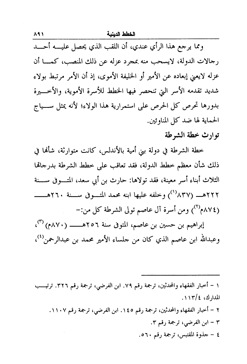 ومما يرجع هذا الرأي عندي، أن اللقب الذي يحصل عليه أحد رجالات الدولة، لا يسحب منه بمجرد عزله عن ذلك المنصب، كما أن عزله لا يعني إبعاده عن الأمير أو الخليفة الأموي، إذ أن الأمر مرتبط بولاء شديد تقدمه الأسر التي تنحصر فيها الخطط للأسرة الأموية، والأخيرة بدورها تحرص كل الحرص على استمرارية هذا الولاء؛ لأنه يمثل سياج الحماية لها ضد كل المناوئين.
