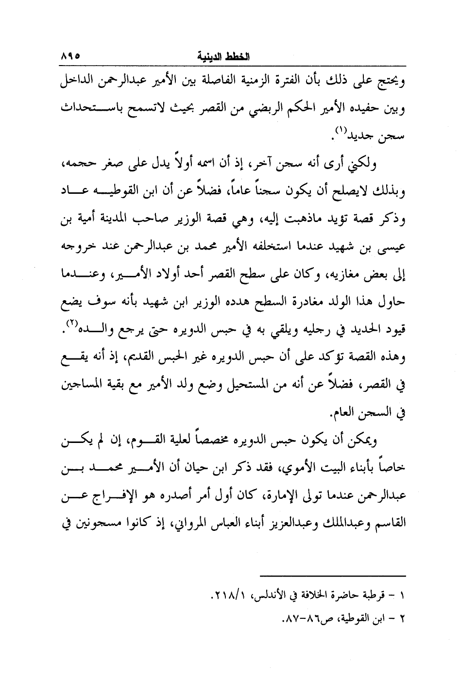 ويحتج على ذلك بأن الفترة الزمنية الفاصلة بين الأمير عبد الرحمن الداخل وبين حفيده الأمير الحكم الربضي من القصر بحيث لا تسمح باستحداث سجن جديد1.