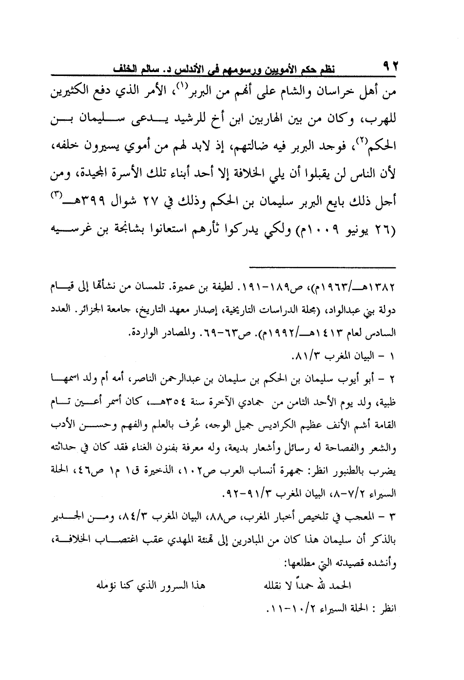 3- المعجب في تلخيص أخبار المغرب، ص88، البيان المغرب 3/84، ومن الجدير بالذكر أن سليمان هذا كان من المبادرين إلى تهنئة المهدي عقب اغتصاب الخلافة، وأنشده قصيدته التي مطلعها: