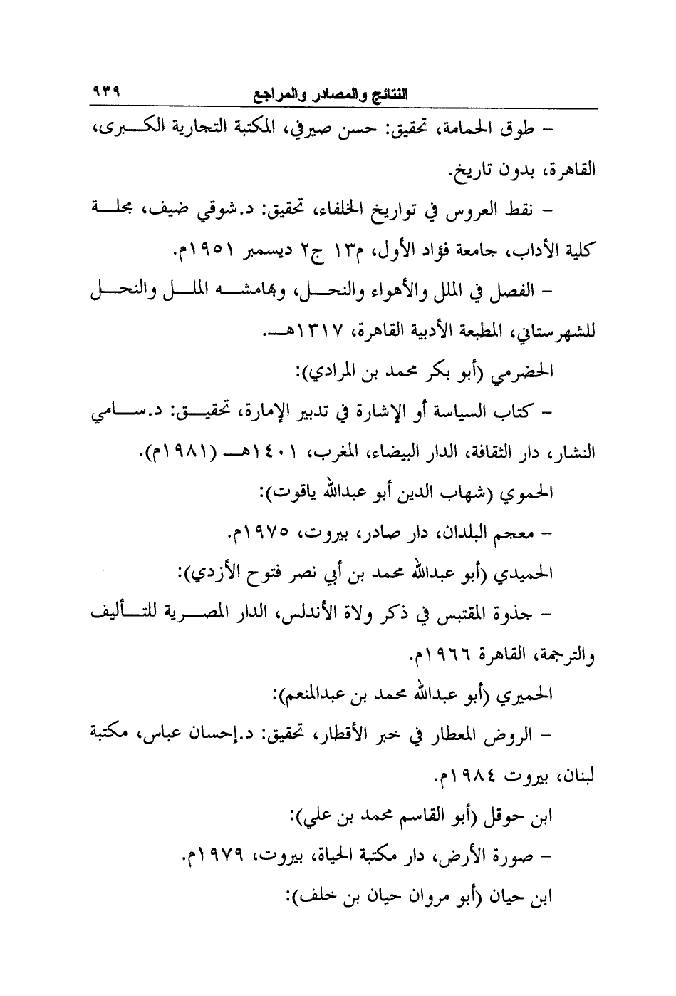 - جذوة المقتبس في ذكر ولاة الأندلس، الدار المصرية للتأليف والترجمة، القاهرة 1966م.