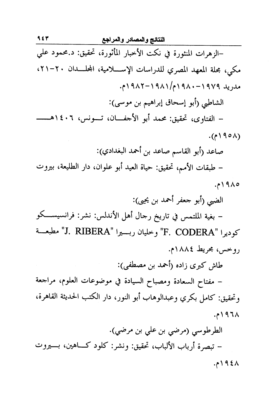 - بغية الملتمس في تاريخ رجال أهل الأندلس: نشر: فرانسيسكو كوديرا "F.CODERA" وخليان ربيرا "J. RIBERA" مطبعة روخس، مجريط 1884م.