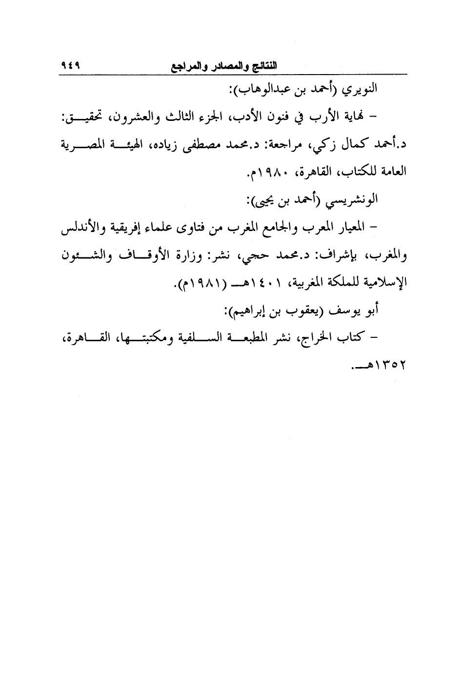 - نهاية الأرب في فنون الأدب، الجزء الثالث والعشرون، تحقيق: د. أحمد كمال زكي، مراجعة: د. محمد مصطفى زياده، الهيئة المصرية العامة للكتاب، القاهرة، 1980م.